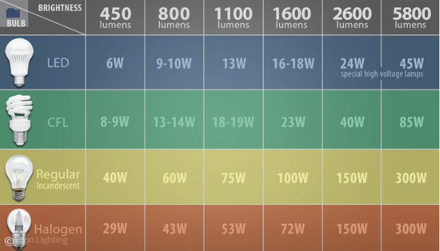 - External Link: 1600 Lumens to Watts Conversion