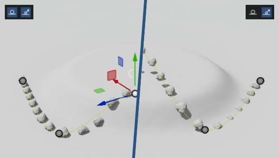 1.1.1: Objects are now placed along a spline that is considerably easier to manipulate using its Control Points and the Gizmo.