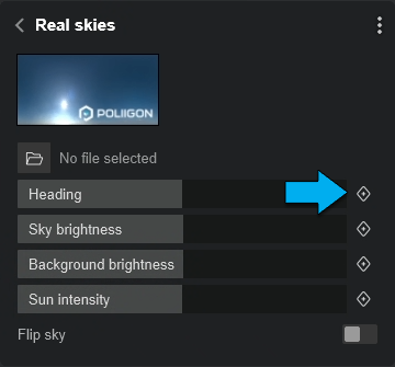 The Heading, Sky Brightness, Background Brightness, and Sun Intensity sliders can be keyframed in Movie Mode: