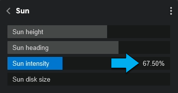 2.7.1: A new slider, Sun Intensity now controls the brightness of the Sun independently from the rest of the Sky.