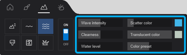 - Water Material: the values of the Color density slider have been flipped to display the correct output.