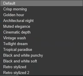 - Photo Matching: a horizon line is no longer visible when rendering with this Effect active.