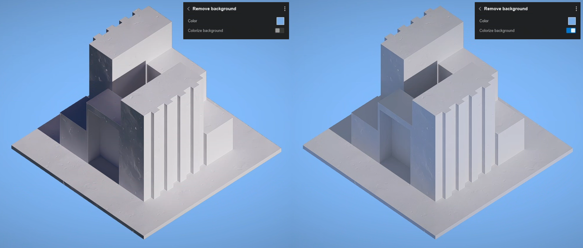 The option to influence the tone of the lights and shadows using the background color is also available.