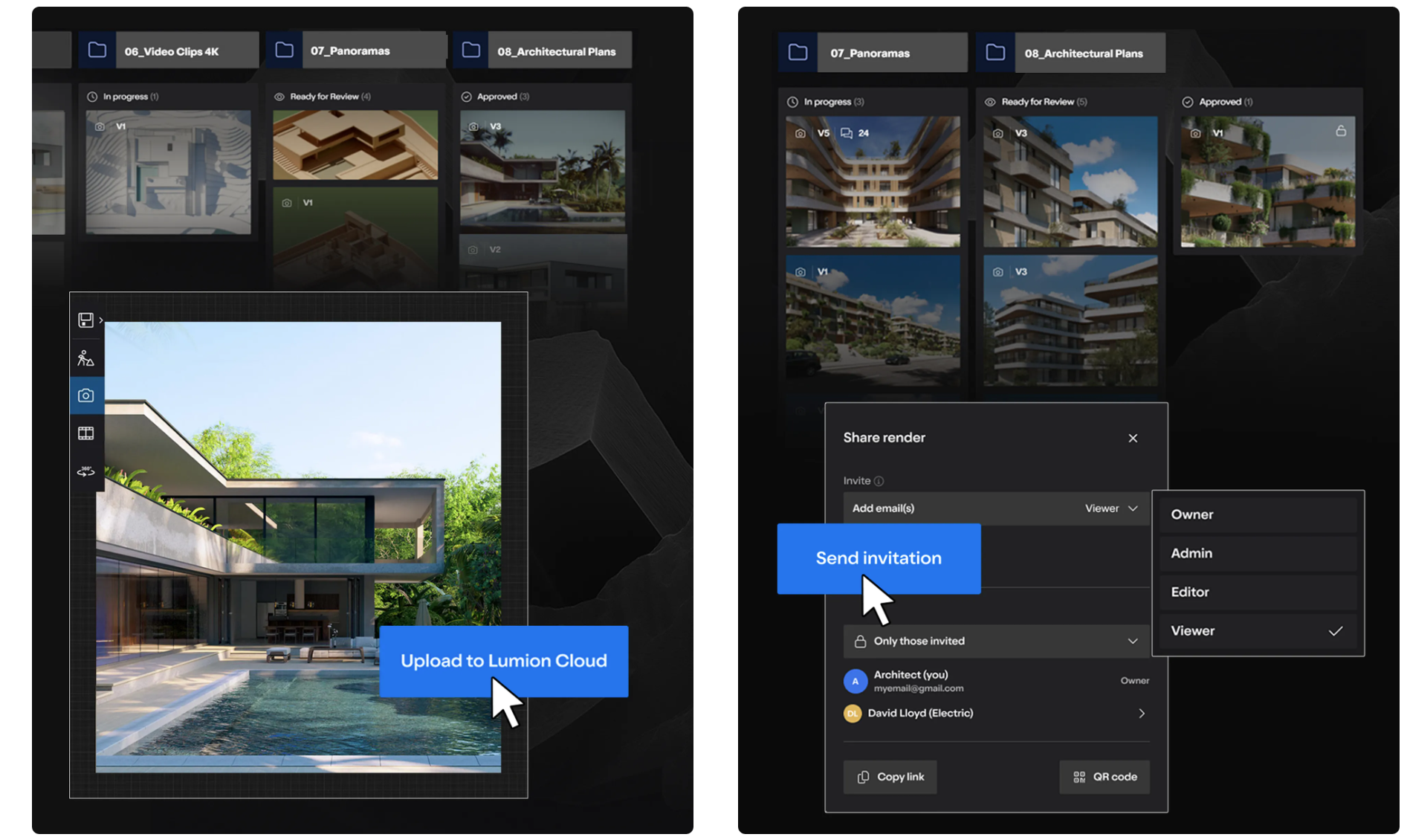 Lumion Cloud is a secure, browser-based platform for sharing and managing your renders online.