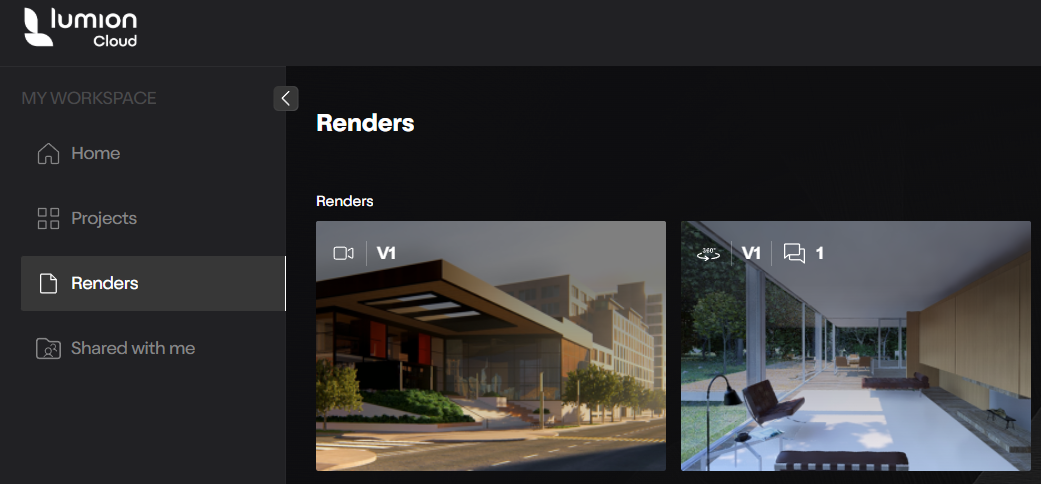 When the setting is enabled, Lumion will render the file to the chosen location, but also, a copy will be uploaded to the Renders page in your Lumion Cloud: