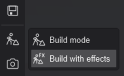 The Build with Effects button has been moved to the Sidebar Menu. It will show up when hovering the cursor over the Build Mode button.
