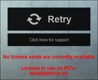 1.2: If Lumion is not running on the computer that is shown in the error message, please start and quit Lumion on that computer to release the Seat.