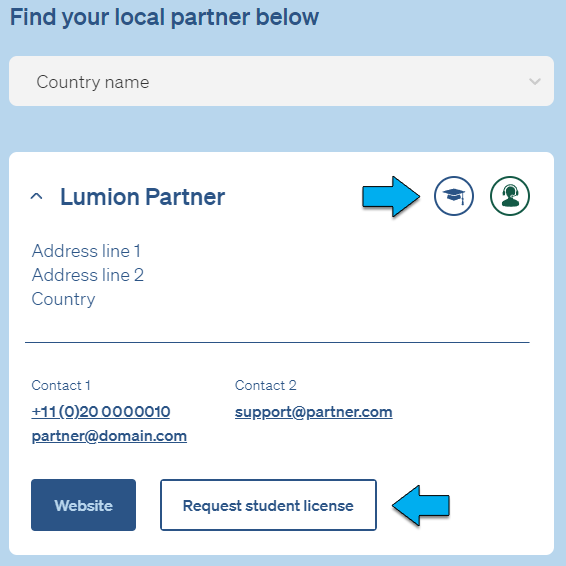 An application page will display the contact details of our Lumion Partners located in your region.