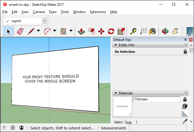 2.2: Import the model in Lumion and assign a Standard Material to the TV screen: