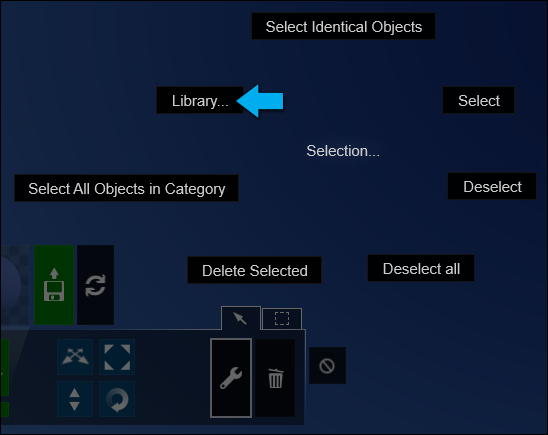1.5: Lumion 9.0 and newer: Click on the Select button, and then click on the Object Icon of the red questionmark to select it. The Replace Selection button is located on the Object Panel in the top right corner of the Build Mode screen: