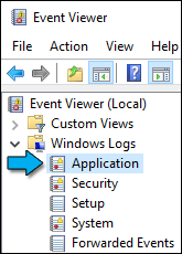 1.2: In the Event Viewer window, double-click on Windows Logs and then click on Application: