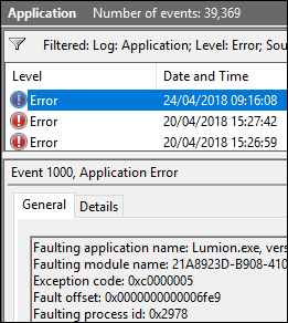 1.3: Use the Shift or CTRL keys to select the events around the time of the last error.