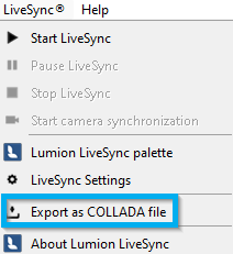 3.2: Alternatively, use the Export as COLLADA file from the LiveSync menu: