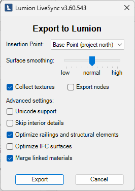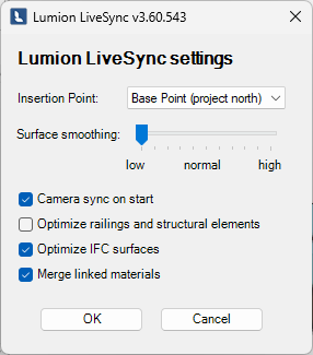 - If ticked, IFC surfaces will use far fewer materials which can help prevent very low framerates in Lumion.