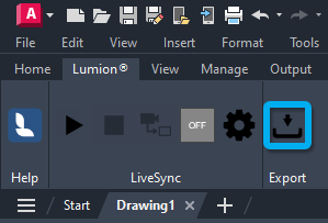 3.1: If you prefer to export your model via a file and you are using Lumion 8.5 or newer and Autodesk AutoCAD 2017-2021, you can export a Lumion Collada file (.DAE) using the Lumion LiveSync for Autodesk AutoCAD Export button in the palette:
