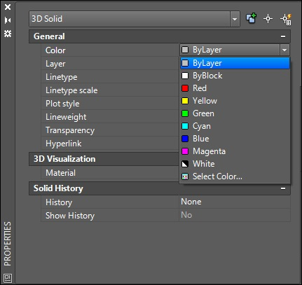 - If you have not assigned an AutoCAD material to a part of your model and it is using ByLayer (see the screenshot below), all parts of the model that use the same ByLayer color will be imported as a single surface with one material in Lumion. The material name of the imported surface in Lumion will be based on the Layer name in Autodesk AutoCAD.