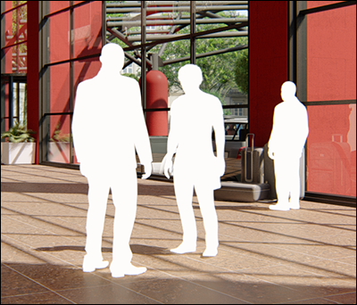 2.2: Alternatively, if you can't replace your people/animal models with models from the People - 3D - Silhouettes and Animals - 3D - Silhouettes tabs, consider rendering the Photo, Clip or Movie twice: one version with the people/animal models and the other version with the models placed on a hidden Layer.