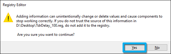 1.1 To apply the fix, please download the file TdrDelay_100.reg file below to your Desktop and double-click on it: