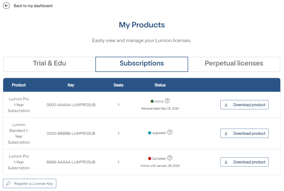 - Knowledge Base: What does the status of a license in the Lumion Account mean?