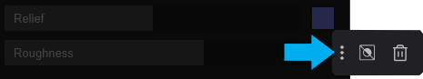 - Relief: The slider increases the bumps and dents on the surface. Using a Normal Map is also possible. The value of the Relief slider will make parts of the surface pop out when increased.