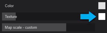 - Texture: The slider controls how much influence a texture has over the Material assigned to a surface. The Map Slot allows a custom texture to be added. Decreasing the Texture slider will increase the influence of the Color.