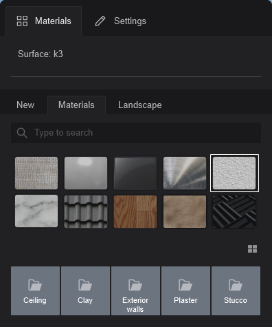 - The Material Library has been reorganized into 3 main Categories: New, Materials, and Landscape: