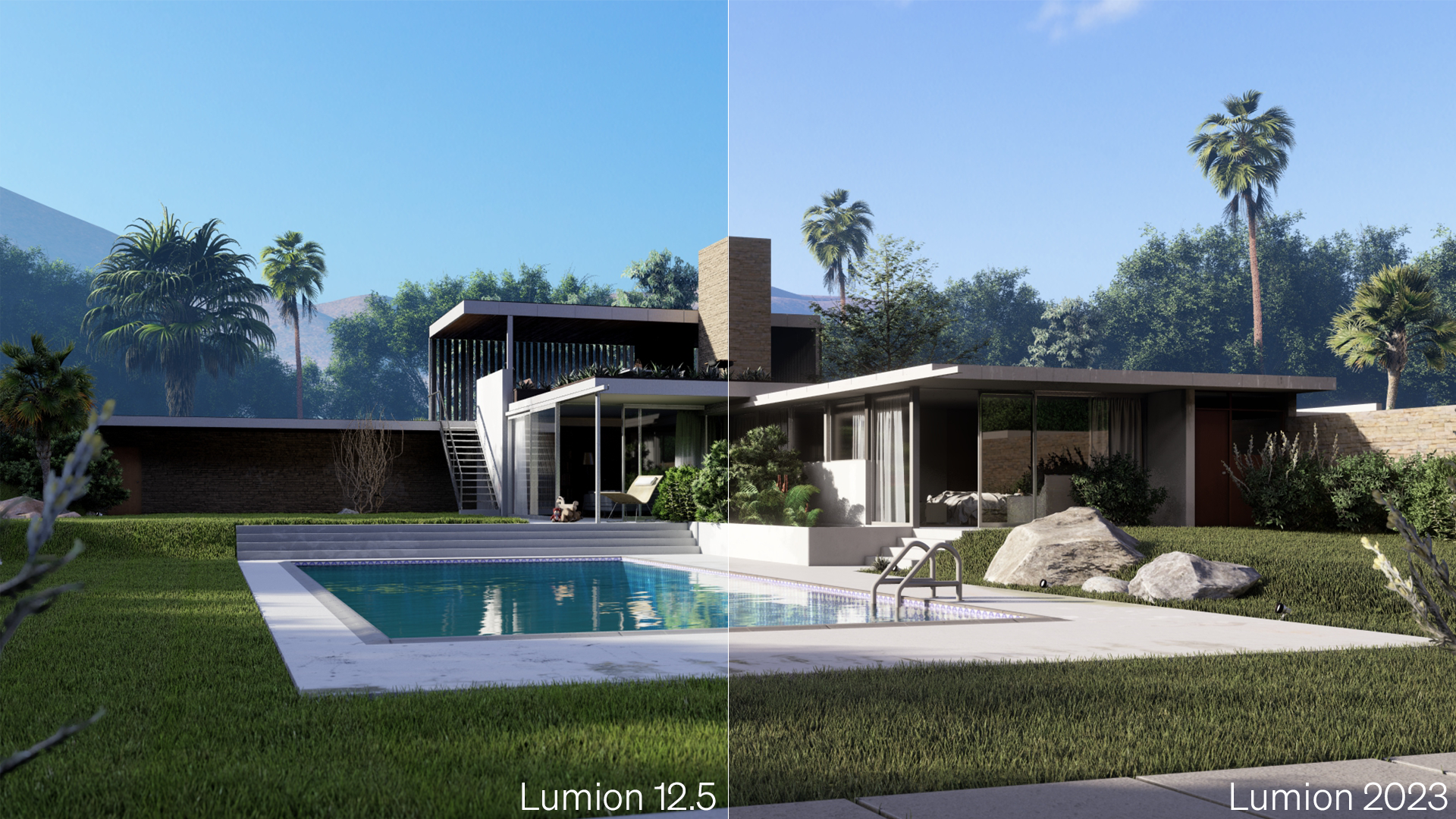- Branding: Lumion 2023 features a refreshed brand identity that has been integrated into all platforms, versions and editions.