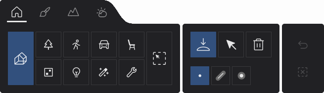 - Objects Category: models from the Objects Category snap and align to the surfaces of Imported Models depending on their spatial designation (Example: a chair will snap and align to the closest horizontal surface, while a painting will align its orientation to the normal of a vertical surface).